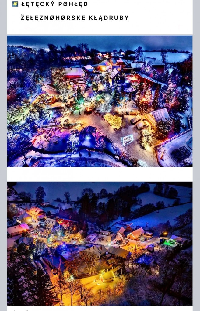 Panoramatická fotografie vánočních Kladrub v Železných horách